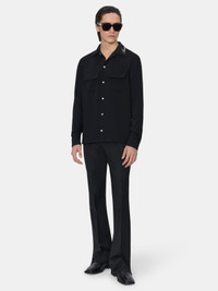 THE HOUSE SCRIPT LOGO ILLUSTRATES VERSATILE MENSWEAR SILHOUETTES FOR PRE-SPRING 2026. THE ROUND POCKET DRESS SHIRT IS DESIGNED IN AN EASY FIT WITH A NOTCHED COLLAR, FRONT FLAP POCKETS, AND THE EMBROIDERED SCRIPT LOGO ON THE LAPEL. PRE-SPRING 2026 COLLECTION MADE IN ITALY 100% POLYESTER THIS GARMENT HAS UNDERGONE A SPECIAL PROCESS WHICH RESULTS IN INTENTIONAL VARIATIONS OF SHADING AND COLOR, AND ADD TO THE PIECE'S UNIQUE CHARACTERISTICS. THIS MAY LEAD TO BLEEDING OR DYE TRANSFER. PLEASE USE CAUTION WHEN WASHING OR DRY-CLEANING THIS ITEM STYLE:AMSTCA1097-001 SIZE & FIT MODEL MEASUREMENTS: HEIGHT: 6’1" CHEST: 36" WAIST: 27" HIP: 34.5" PRODUCT MEASUREMENTS (SIZE M): CHEST: 22" SHOULDER: 18" LENGTH: 29" SLEEVE LENGTH: 27"