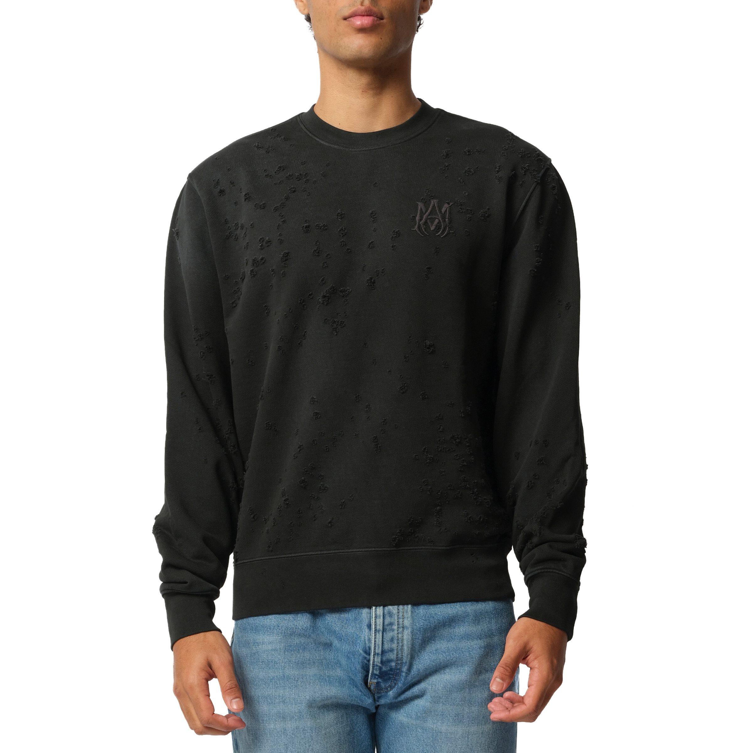 Stay warm and stylish with our MA Shotgun Embroidered Sweatshirt in Black. Made with high-quality material and featuring a unique embroidered design, this sweatshirt is perfect for any occasion. - Composition: 100% Cotton - Embroidered logo at the chest - Ripped detailing - Round neck - Long sleeves - Straight hem - Made in Italy Model is 192 cm and wears size medium SKU: AMJYCW1033 001