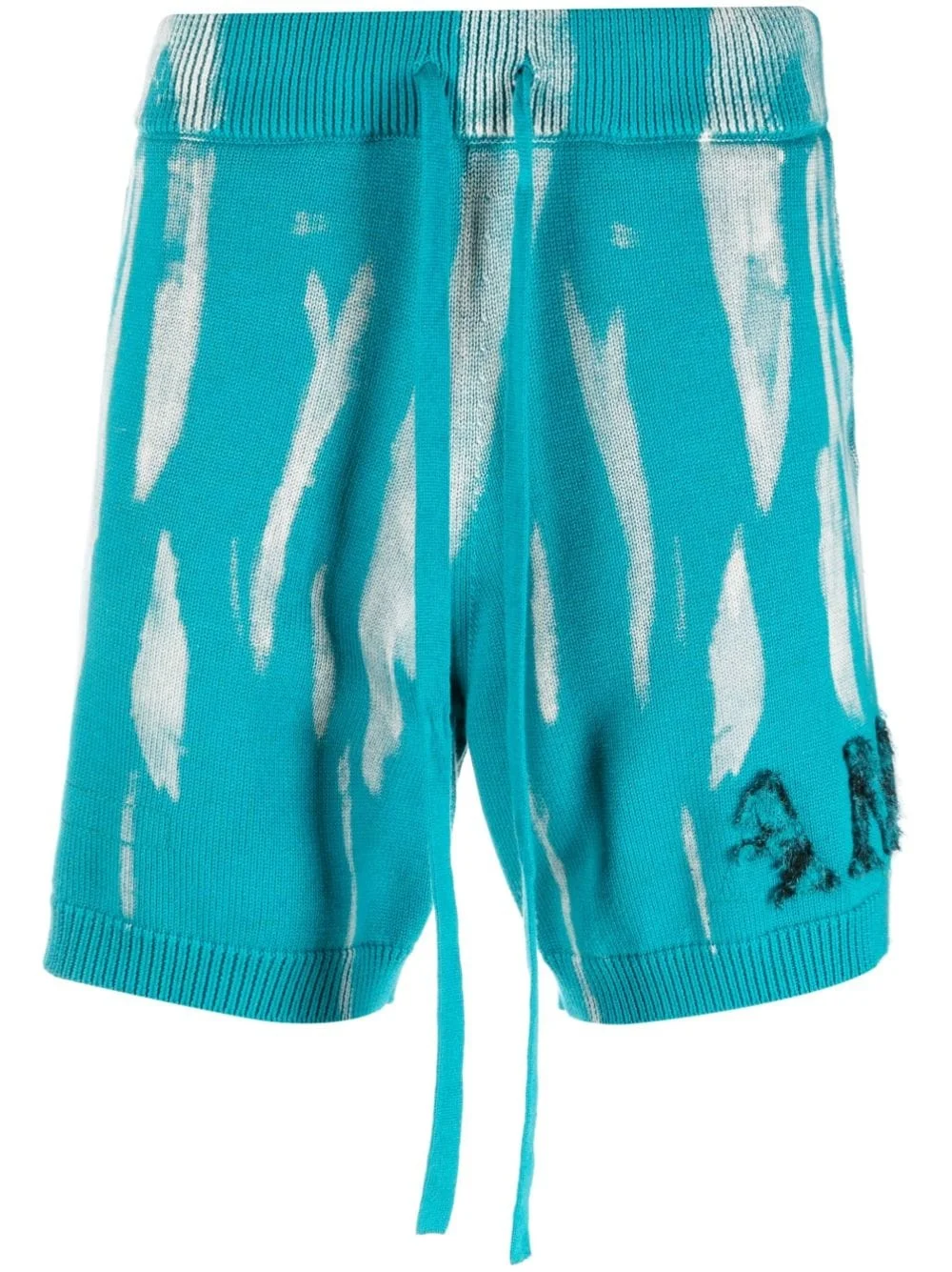 logo-embroidered knitted shorts Highlights - Turquoise blue-green/black/white - Cotton-cashmere blend - Abstract pattern print - Embroidered logo - Elasticated drawstring waistband - Above-knee length Made in Italy Composition Cotton 85%, Cashmere 15% SIZE & FIT Model measurements Height 6 ft 2 in(1.87 m) Bust/Chest 36.41 in(92.5 cm) Hips 35.43 in(90 cm) Waist 29.52 in(75 cm) FittingInformation Designed for relaxed fit, offering a comfortable loose fit over the leg Adjust this piece’s waistband to your preference using the drawstring Made from a midweight non-stretch fabric, this piece offers minimal elasticity when worn This piece fits true to size – take your usual size