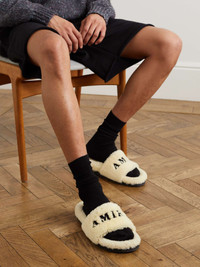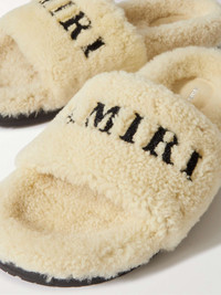 AMIRI's slippers are made from fuzzy shearling that's soft and insulating. They're embroidered with the brand name across the top and have comfortable moulded footbeds. Size & Fit - Fits true to size. Take your normal size - Only available in full sizes, go up to the nearest whole size if you take a half size - European sizing Details & Care - Beige shearling - This item has been imported