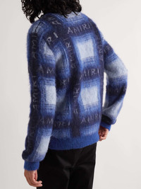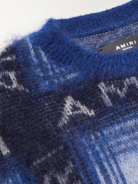 AMIRI's moniker is intarsia-woven throughout the check pattern on this classic sweater. Made in Italy from a soft cotton and cashmere-blend, it has a comfortable fit, crew neck and ribbed edges. Size & Fit - Fits true to size. Take your normal size - The model is wearing a size larger to a looser fit - This sweater is designed for a comfortable fit - Mid-weight knit - Model wears a M - Model measures: chest 36"/ 92cm, height 6'1"/ 185cm Details & Care - Blue, black and white cotton and cashmere-blend - 89% cotton, 11% cashmere; trim: 100% cotton - Hand wash