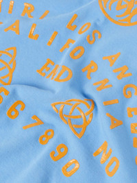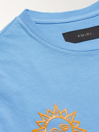 AMIRI taps into the supernatural for its latest collection. Designed to look like a Ouija board, this T-shirt is cut from cotton-jersey and printed with signature logos among traditional words and symbols. Size & Fit - Fits true to size. Take your normal size - Designed for a regular fit - Lightweight, slightly stretchy fabric - Model is shown wearing a M - Model measures: chest 38"/ 96cm, height 6'2"/ 188cm Details & Care - Light-blue and saffron cotton-jersey - 100% cotton - Dry clean