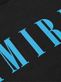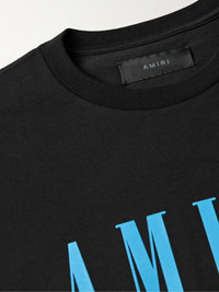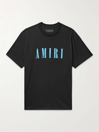 Logo-print tees are a core AMIRI style and part of every seasonal drop. This version is made from smooth cotton-jersey and simply printed with the brand's moniker across the front. Size & Fit - Model wears a size larger to achieve a looser fit - Lightweight, stretchy fabric - Model is shown wearing a M - Model measures: chest 36"/ 92cm, height 6'1"/ 185cm Details & Care - Black and light-blue cotton-jersey - 100% cotton