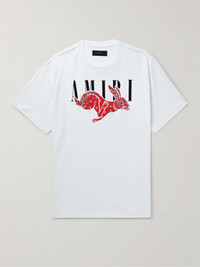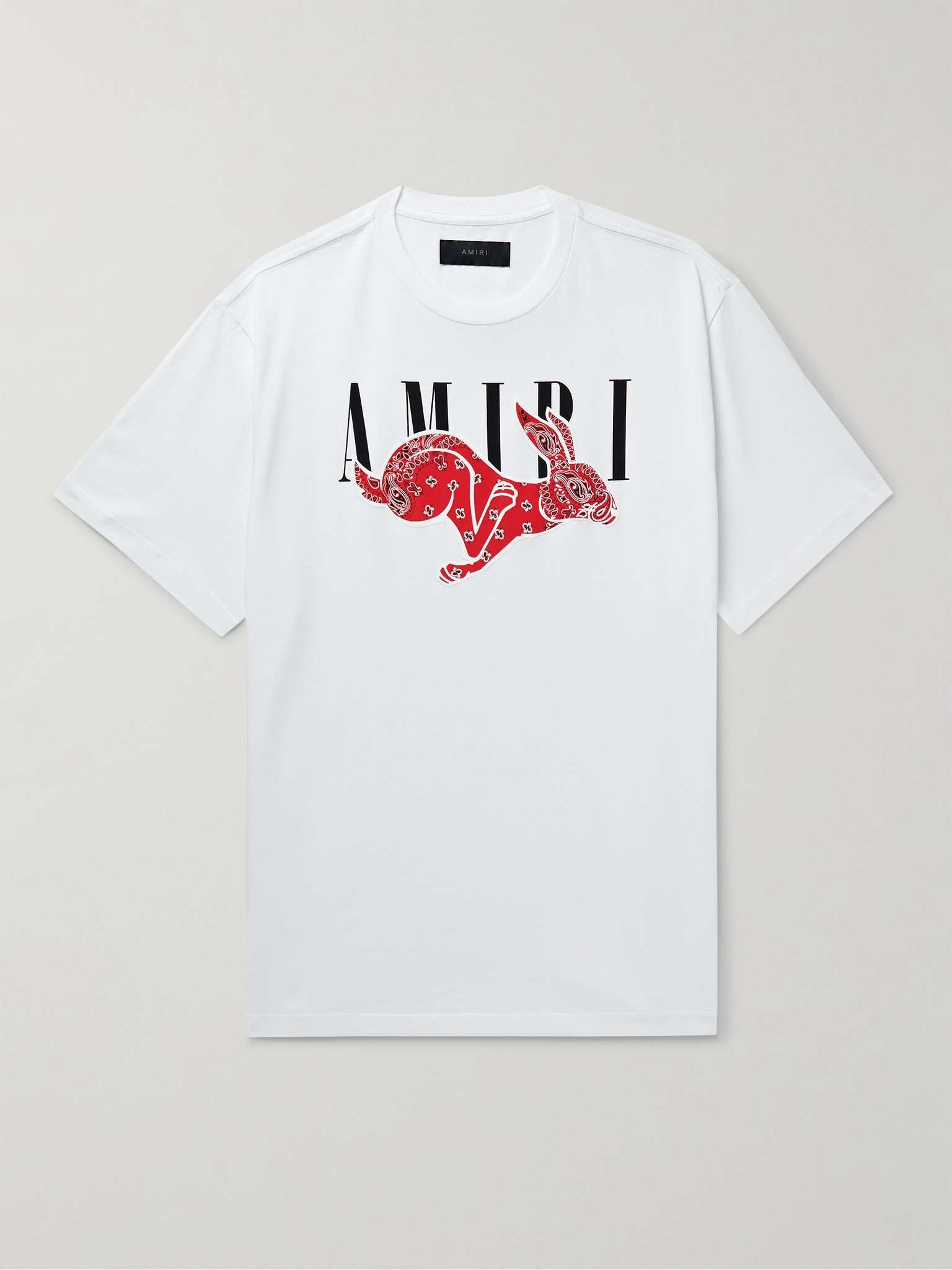 AMIRI pays homage to the 'Year of the Rabbit' with this T-shirt. It's cut from soft cotton-jersey and features a red bunny - in the label's signature bandana print, of course - leaping across the brand name. Size & Fit - Model wears a size larger to achieve a looser fit - Mid-weight, stretchy fabric - Model is shown wearing a L - Model measures: chest 38"/ 96cm, height 6'2"/ 188cm Details & Care - White, black and red cotton-jersey - 100% cotton - Dry clean - This item has been imported