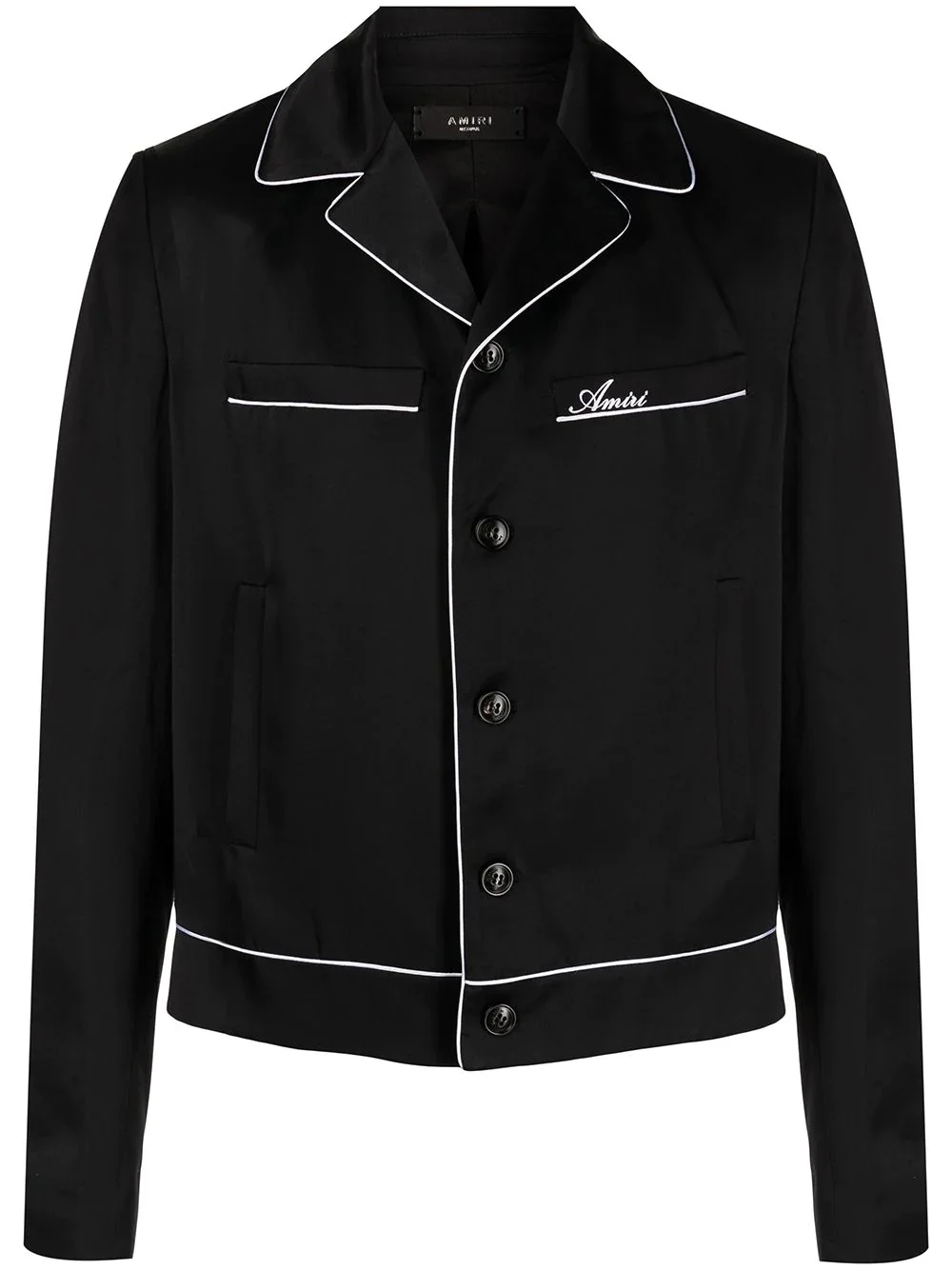 logo-print pyjama-shirt jacket black/white piped-trim detailing notched collar front button fastening logo print at the chest two chest patch pockets long sleeves Made in Italy Composition Outer: Viscose 100%