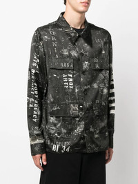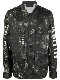 logo-print satin shirt Amiri's streetwear roots are well represented in this satin shirt, which is printed with iterations of the brand's logos and motifs in a faded effect. Four flap pockets at the front add a utilitarian look. Made in Italy Composition Lining: Viscose 100% SIZE & FIT Model measurements Height 6 ft 2 in(1.87 m) Bust/Chest 35.82 in(91 cm) Hips 35.43 in(90 cm) Waist 27.95 in(71 cm) FittingInformation This piece fits true to size. We recommend you get your regular size Cut for a loose fit Made with a mid-weight non-stretch fabric Washing instructions Dry Clean Only