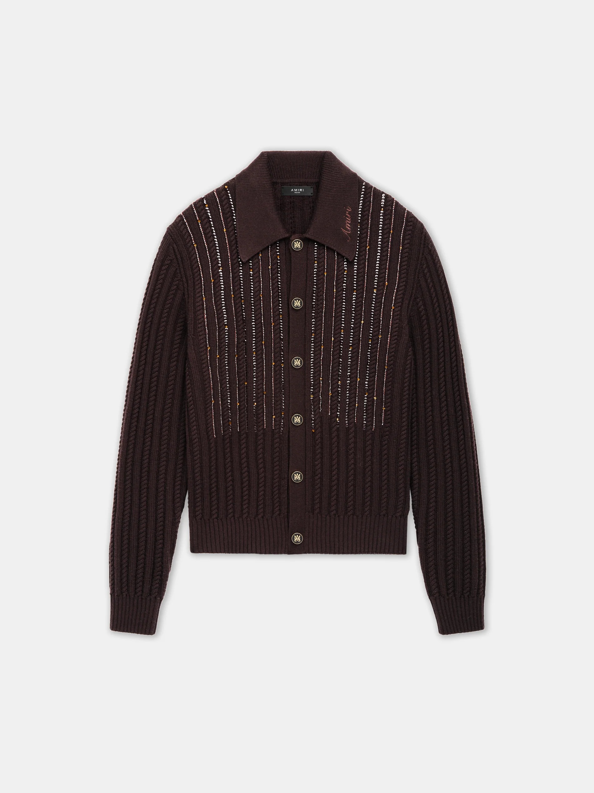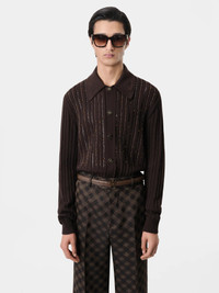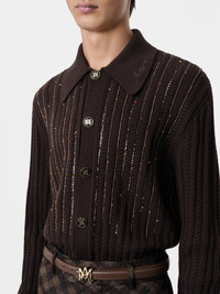 FOR AUTUMN-WINTER 2024 MENSWEAR, KNITWEAR BECOMES A CANVAS FOR INTRICATE AND NOVEL FABRICATION. THE LONG SLEEVE POLO IS KNIT IN SOFT MERINO WOOL, EMBELLISHED WITH BEADS AND SEQUINS, AND FINISHED WITH RIB ACCENTS AND BUTTON-DOWN CLOSURE. AUTUMN-WINTER 2024 COLLECTION MADE IN ITALY 100% MERINO WOOL STYLE:AMKNLS1001-200 SIZE & FIT MODEL IS WEARING SIZE "M" MODEL MEASUREMENTS: HEIGHT: 6'1.5 CHEST: 35.5" WAIST: 27.5" PRODUCT MEASUREMENTS: CHEST: 20.5" SHOULDER: 17.5" LENGTH: 25.5" SLEEVE LENGTH: 35"