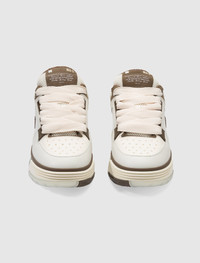 Low top sneakers. Leather upper. Leather perforated toe box. Leather overlays around the toe, eyelet panels, and heel counter. Suede accents. Front lacing. Padded mesh tongue, and collar. Synthetic TPU logos on the side panels. Chunky rubber midsole. Rubber outsole. - Leather, suede, and synthetic mesh upper SKU: AW23MFS009-126
