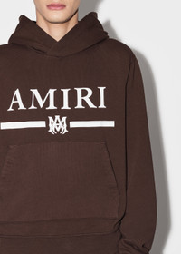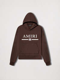 AMIRI MA BAR HOODIE IN BROWN MADE IN ITALY 14 OZ SUPIMA COTTON LOOP TERRY MODEL HEIGHT 6' 2", 28" WAIST, 34" INSEAM AND IS WEARING SIZE US MEDIUM DETAILS & CARE 100% COTTON DRY CLEAN RECOMMENDED