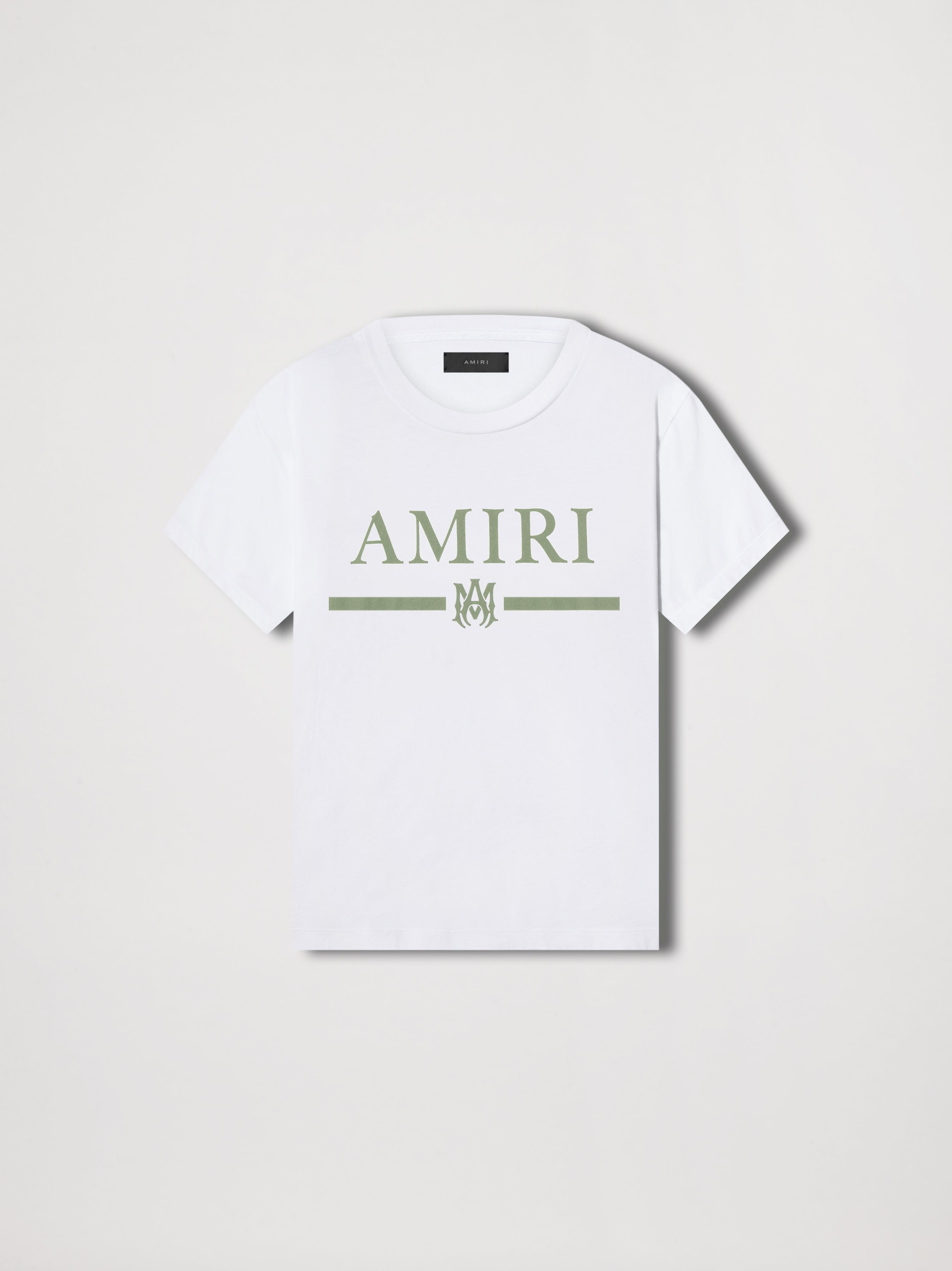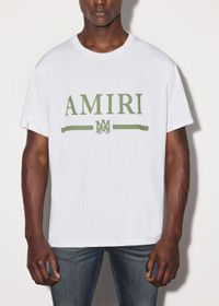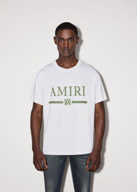 PF22 COLLECTION CLASSIC COTTON BAR TEE. FEATURING AMIRI BAR LOGO. MADE IN ITALY SUPIMA COTTON CLASSIC FIT MODEL IS 6' 2" AND WEARS A SIZE MEDIUM DETAILS & CARE 100% COTTON DRY CLEAN RECOMMENDED