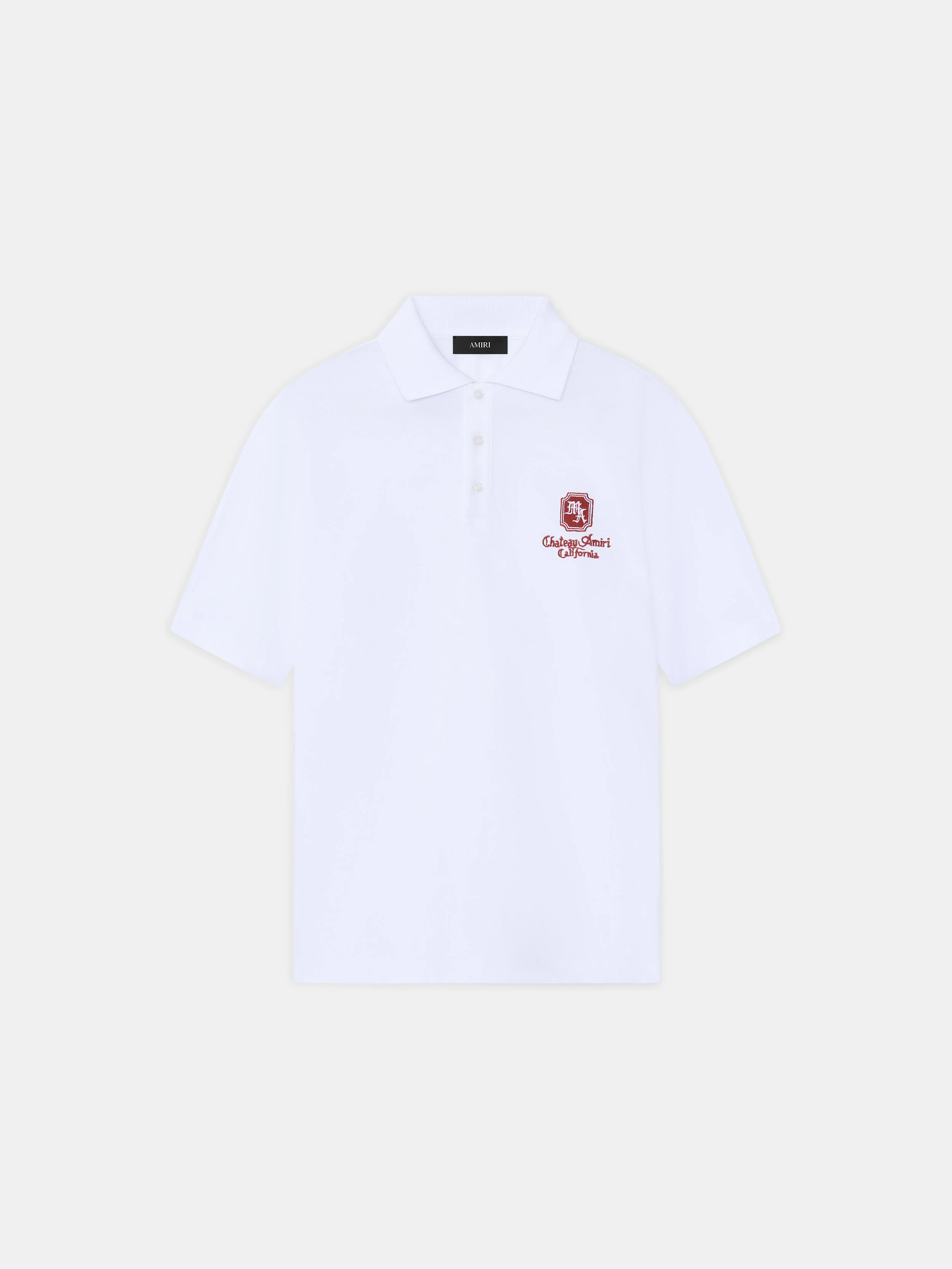 SPRING-SUMMER 2026 INTRODUCES CHATEAU AMIRI, AN IMAGINED PREMIER HOTEL INSPIRED BY ICONIC HOLLYWOOD HIDEAWAYS. THE MA CHATEAU POLO IN COTTON IS DESIGNED IN A RELAXED FIT WITH SEASONAL LOGO EMBROIDERY AND THREE-BUTTON CLOSURE. SPRING-SUMMER 2026 COLLECTION MADE IN PORTUGAL 100% COTTON THIS GARMENT HAS UNDERGONE A SPECIAL PROCESS WHICH RESULTS IN INTENTIONAL VARIATIONS OF SHADING AND COLOR, AND ADD TO THE PIECE'S UNIQUE CHARACTERISTICS. THIS MAY LEAD TO BLEEDING OR DYE TRANSFER. PLEASE USE CAUTION WHEN WASHING OR DRY-CLEANING THIS ITEM STYLE:AMTOJR1091-100 SIZE & FIT MODEL MEASUREMENTS: HEIGHT: 6’2” CHEST: 35.5" WAIST: 28" HIP: 34.5" PRODUCT MEASUREMENTS (SIZE M): CHEST: 23.5" SHOULDER: 24" LENGTH: 29" SLEEVE LENGTH: 9.5"
