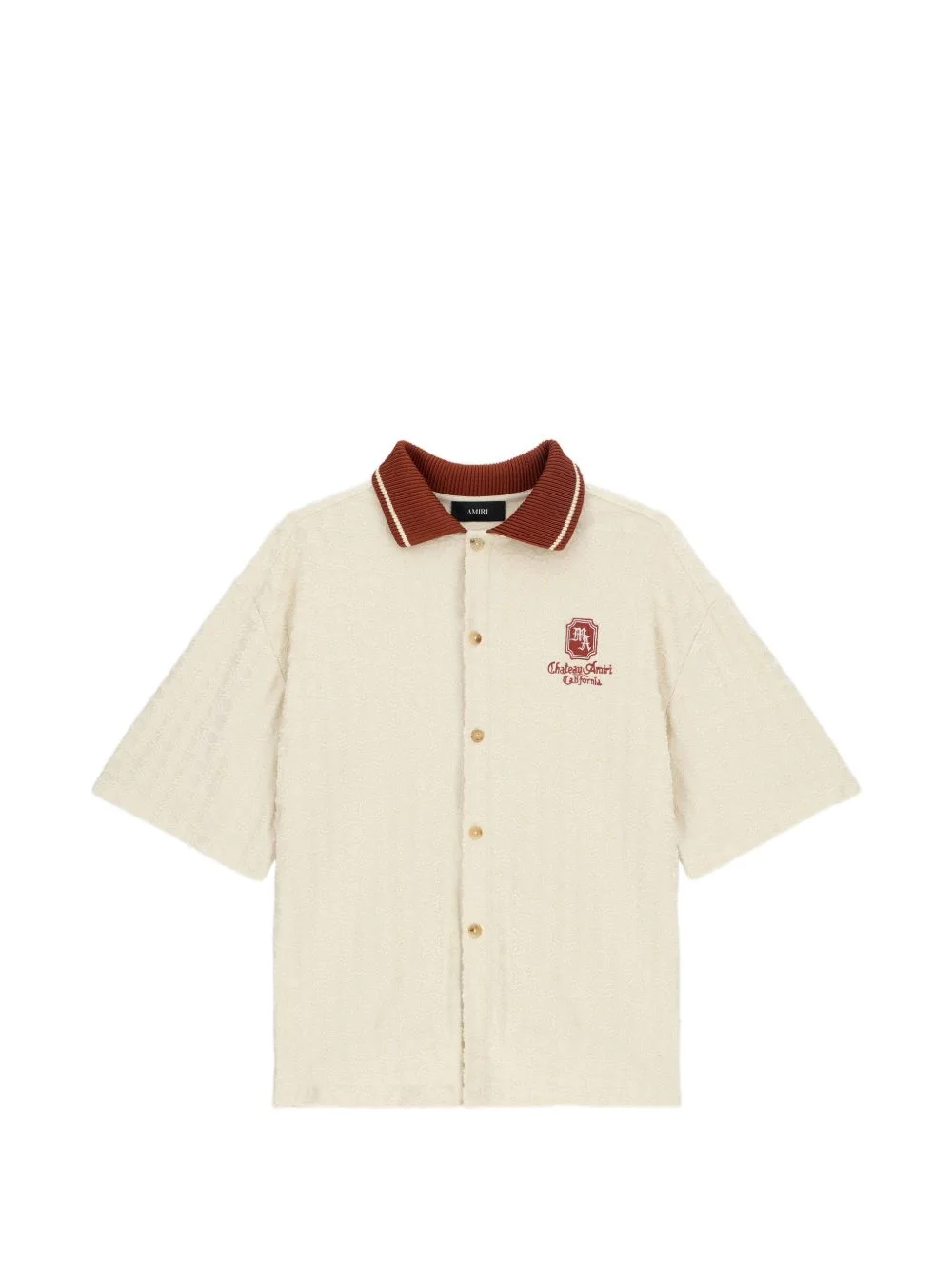 Ma Chateau ribbed collar logo shirt Highlights - Beige - Embroidery - Button fastening - Ribbed detail - Oversized fit - Short sleeves Imported Composition Cotton 100% Washing instructions Machine Wash