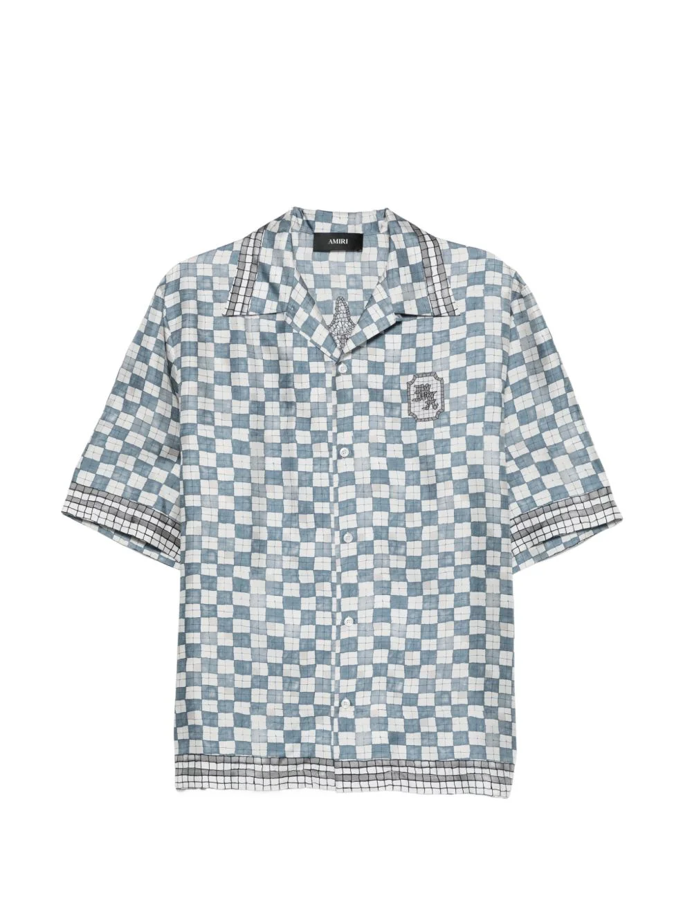 MA chequered graphic shirt Highlights - Blue and white - Chequered pattern - Button fastening - Camp collar - Graphic detail Made in Italy Composition Silk 100% Washing instructions Hand Wash