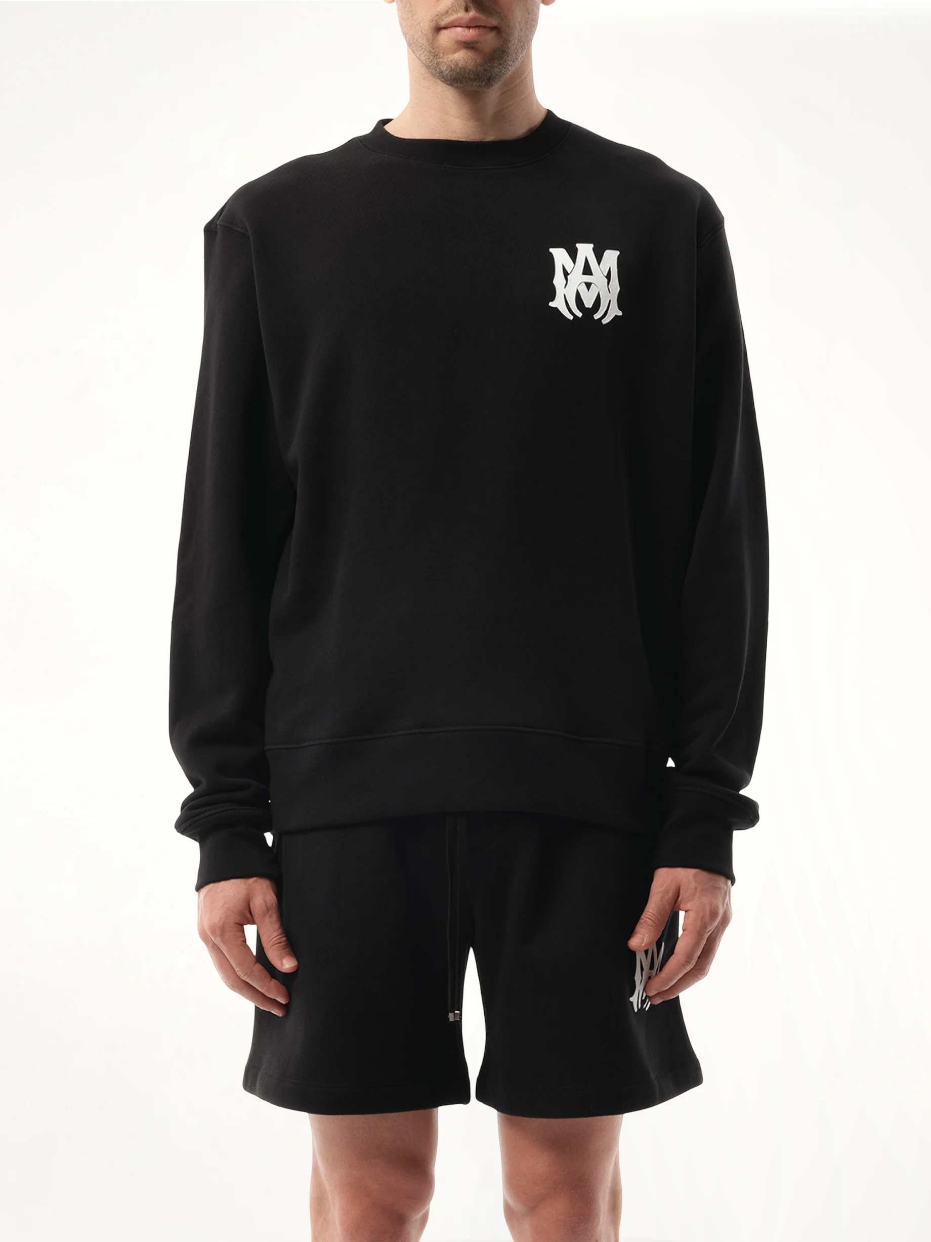 Stay warm and stylish with the MA Core Logo Sweatshirt in Black. Made from comfortable and durable materials, this sweatshirt features the MA logo and is perfect for any casual occasion. The perfect addition to your wardrobe for a sleek and professional look. - Composition: 100% Cotton - MA icon on the front - Amiri core logo on the rear - Relaxed fit - Long sleeves - Made in USA Model is 192 cm and wears size L SKU: AMJYCW1038 001|AMTOJR1128 001