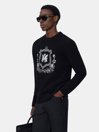 AUTUMN-WINTER 2025 KNITWEAR INTRODUCES THE MA CREST, A NEW HOUSE SIGNATURE INSPIRED BY COUNTRY CLUB INSIGNIA. THE MA CREST CREW IN WOOL IS EMBROIDERED WITH SEASONAL LOGO GRAPHICS AND FINISHED WITH WIDE RIB ACCENTS. AUTUMN-WINTER 2025 COLLECTION MADE IN ITALY 100% WOOL THIS GARMENT HAS UNDERGONE A SPECIAL PROCESS WHICH RESULTS IN INTENTIONAL VARIATIONS OF SHADING AND COLOR, AND ADD TO THE PIECE'S UNIQUE CHARACTERISTICS. THIS MAY LEAD TO BLEEDING OR DYE TRANSFER. PLEASE USE CAUTION WHEN WASHING OR DRY-CLEANING THIS ITEM STYLE:AMKNCW1101-001 SIZE & FIT MODEL MEASUREMENTS: HEIGHT: 6’2.5" CHEST: 35.5" WAIST: 28" HIP: 34.5" PRODUCT MEASUREMENTS (SIZE M): CHEST: 22.6" SHOULDER: 19.32" LENGTH: 24.24" SLEEVE LENGTH: 10.4"