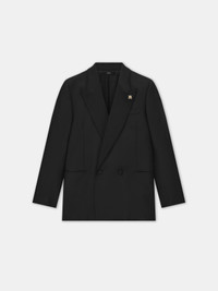 PRE-FALL 2025 INTRODUCES VERSATILE SUITING SILHOUETTES STEEPED IN THE VISUAL LANGUAGE OF AMERICA'S MID-CENTURY. THE MA DOUBLE-BREASTED BLAZER IS DESIGNED IN VIRGIN WOOL AND FINISHED WITH A WIDE NOTCHED SATIN LAPEL AND BUTTON CLOSURE. PRE-FALL 2025 COLLECTION MADE IN ITALY 100% VIRGIN WOOL THIS GARMENT HAS UNDERGONE A SPECIAL PROCESS WHICH RESULTS IN INTENTIONAL VARIATIONS OF SHADING AND COLOR, AND ADD TO THE PIECE'S UNIQUE CHARACTERISTICS. THIS MAY LEAD TO BLEEDING OR DYE TRANSFER. PLEASE USE CAUTION WHEN WASHING OR DRY-CLEANING THIS ITEM STYLE:AMSUFJ1105-001 SIZE & FIT MODEL IS WEARING SIZE 46 MODEL MEASUREMENTS: HEIGHT: 6’2” CHEST: 35.5" WAIST: 28" HIP: 34.5" PRODUCT MEASUREMENTS (SIZE 46): CHEST: 41" SHOULDER: 17.125" LENGTH: 30.875" SLEEVE LENGTH: 26.125""
