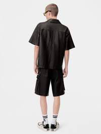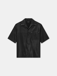 FOR PRE-FALL 2025, MENSWEAR SILHOUETTES ARE ELEVATED THROUGH STRUCTURED LEATHER FABRICATION. THE MA LEATHER CAMP SHIRT FEATURES MONOCHROME MA ICON EMBROIDERY AND IS FINISHED WITH A NOTCHED COLLAR AND BUTTON-DOWN CLOSURE. PRE-FALL 2025 COLLECTION MADE IN TURKEY 100% LEATHER THIS GARMENT HAS UNDERGONE A SPECIAL PROCESS WHICH RESULTS IN INTENTIONAL VARIATIONS OF SHADING AND COLOR, AND ADD TO THE PIECE'S UNIQUE CHARACTERISTICS. THIS MAY LEAD TO BLEEDING OR DYE TRANSFER. PLEASE USE CAUTION WHEN WASHING OR DRY-CLEANING THIS ITEM STYLE:AMLTIR1012-001 SIZE & FIT MODEL IS WEARING SIZE 46 MODEL MEASUREMENTS: HEIGHT: 6’2” CHEST: 38" WAIST: 28" HIP: 34.5" PRODUCT MEASUREMENTS (SIZE 46): CHEST: 22.875" SHOULDER: 19.25" LENGTH: 27.375" SLEEVE LENGTH: 10.5"