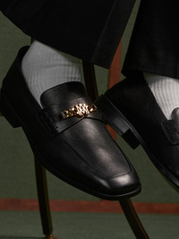 FOR SPRING-SUMMER 2025, THE TIME-HONORED LOAFER IS HONED INTO A LOW, STREAMLINED SILHOUETTE WITH CHAIN AND MA ICON DETAILING. THE MA SLIP ON LOAFER IS CRAFTED IN BUFFALO LEATHER ON LEATHER STACK SOLES AND FINISHED WITH A CLASSIC SADDLE ACCENTED WITH CHAIN DETAILING AND CUSTOM MA HARDWARE. SPRING-SUMMER 2025 COLLECTION MADE IN ITALY 100% LEATHER EACH PIECE IS METICULOUSLY CRAFTED AND INHERENTLY UNIQUE. SLIGHT VARIATIONS IN THE ARTWORK ARE A NATURAL RESULT OF THE PRINTING PROCESS AND CONTRIBUTE TO THE DISTINCTIVE CHARACTER OF THIS PRODUCT. STYLE:AMFOLR1027-001
