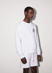 PF22 COLLECTION COTTON CREW. FEATURING MIKE AMIRI MOTIF. AMIRI LOGO ON BACK MADE IN LOS ANGELES, CA REGULAR FIT MODEL IS 6'2" AND WEARS A SIZE MEDIUM WE RECOMMEND SIZING UP FOR A LOOSER FIT DETAILS & CARE 100% COTTON DRY CLEAN RECOMMENDED