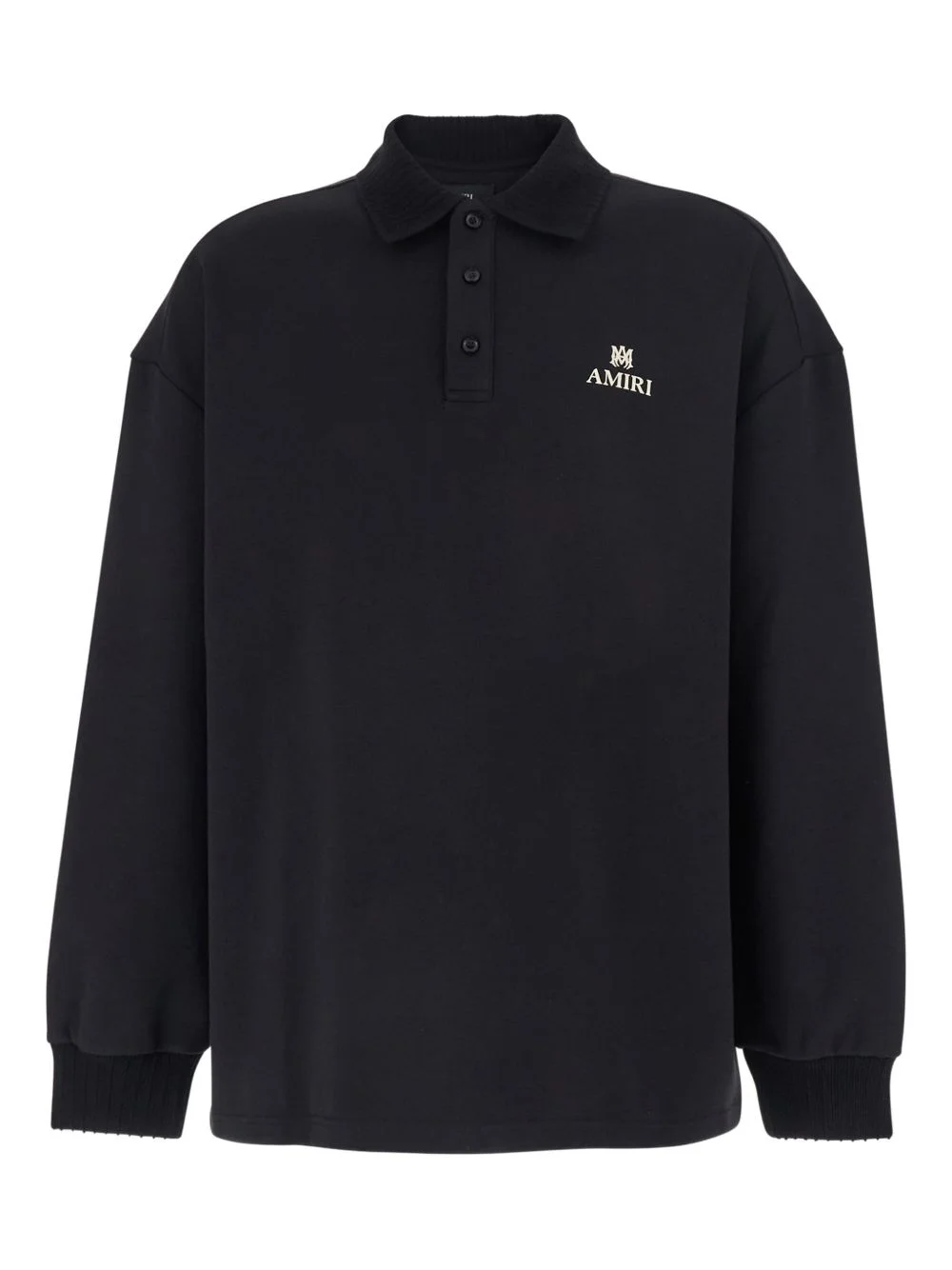 logo-print polo shirt Highlights - Black - Ribbed details - Logo detail - Polo collar - Button fastening - Long sleeves Made in United States Composition Cotton 100% Washing instructions Read Manufacturer Guidelines