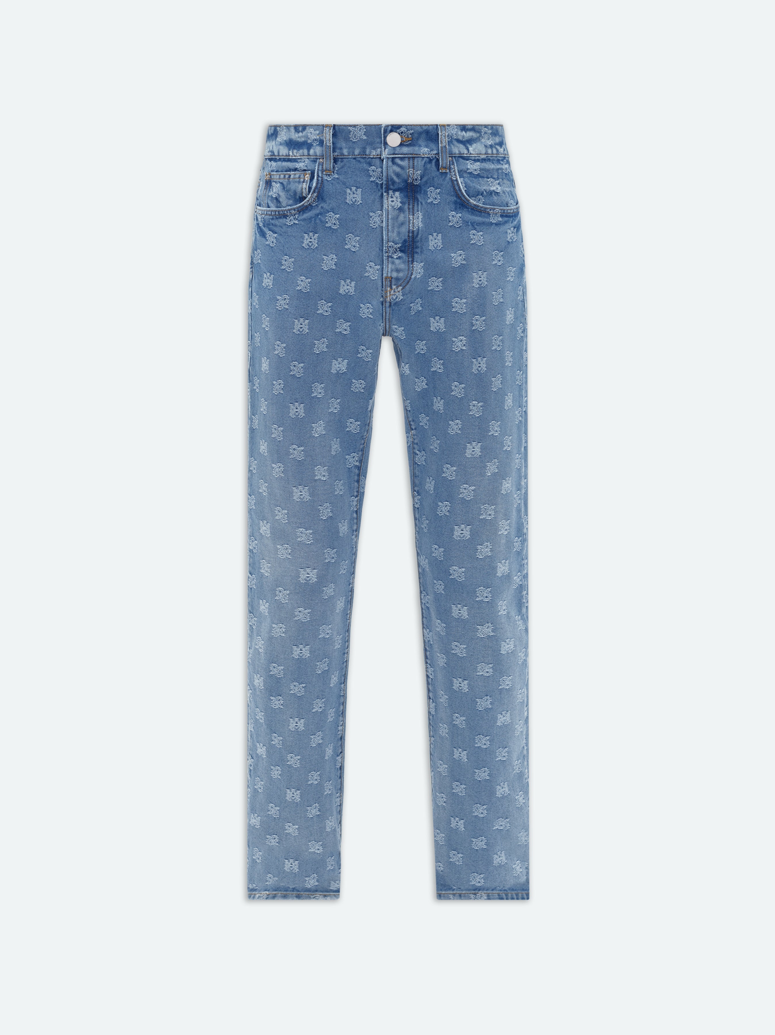 THE MA ICON AND SIGNATURE PAISLEY MOTIF COALESCE IN A RHYTHMIC SCHEME IN THESE JACQUARD WEAVE JEANS. JOINING VISUAL CUES OF TIMELESS LUXURY WITH CONTEMPORARY GRAPHIC APPEAL, THESE STRAIGHT-CUT JEANS ARE FINISHED WITH FIVE-POCKET CONSTRUCTION AND A SLIGHTLY SUN-FADED WASH TREATMENT. AUTUMN-WINTER 2023 COLLECTION MADE IN USA 100% COTTON DRY CLEAN ONLY