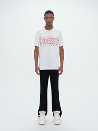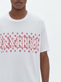 THIS TEE IN SOFT COTTON JERSEY IS EMBELLISHED WITH AN OPTICAL GRAPHIC OF HOUSE SIGNATURE PAISLEY MOTIF, MA ICON AND BOLD AMIRI OUTLINE LOGO. A CLASSIC EMBLEM OF EASE, THIS TEE IS AN IDEAL COMPLEMENT TO HOUSE DENIM, TROUSER OR SHORT OFFERINGS. MODEL IS 6'1" AND WEARS A SIZE MEDIUM MADE IN USA 100% COTTON DRY CLEAN RECOMMENDED