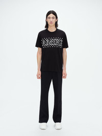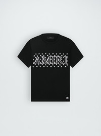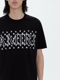 THIS TEE IN SOFT COTTON JERSEY IS EMBELLISHED WITH AN OPTICAL GRAPHIC OF HOUSE SIGNATURE PAISLEY MOTIF, MA ICON AND BOLD AMIRI OUTLINE LOGO. A CLASSIC EMBLEM OF EASE, THIS TEE IS AN IDEAL COMPLEMENT TO HOUSE DENIM, TROUSER OR SHORT OFFERINGS. MODEL IS 6'1" AND WEARS A SIZE MEDIUM MADE IN USA 100% COTTON DRY CLEAN RECOMMENDED