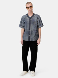 SPORTSWEAR CANONS ARE ELEVATED THROUGH REFINEMENTS IN FORM AND MATERIAL FOR PRE-FALL 2025. THE MA QUAD DENIM BASEBALL SHIRT IS DESIGNED WITH PANELED CONSTRUCTION, CONTRAST PIPING, AND SNAP BUTTON CLOSURE. PRE-FALL 2025 COLLECTION MADE IN ITALY 100% COTTON THIS GARMENT HAS UNDERGONE A SPECIAL PROCESS WHICH RESULTS IN INTENTIONAL VARIATIONS OF SHADING AND COLOR, AND ADD TO THE PIECE'S UNIQUE CHARACTERISTICS. THIS MAY LEAD TO BLEEDING OR DYE TRANSFER. PLEASE USE CAUTION WHEN WASHING OR DRY-CLEANING THIS ITEM STYLE:AMDNIR1042-402 SIZE & FIT MODEL IS WEARING SIZE M MODEL MEASUREMENTS: HEIGHT: 6’2” CHEST: 38" WAIST: 28" HIP: 34.5" PRODUCT MEASUREMENTS (SIZE M): CHEST: 45.75"" SHOULDER: 19"" LENGTH: 23.5"" SLEEVE LENGTH: 11.25"""
