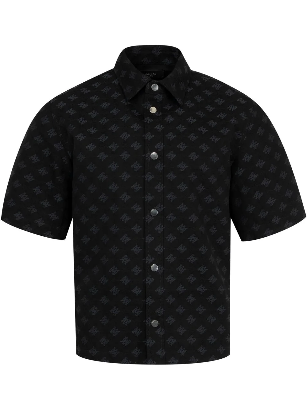 Ma Quad Jacquard shirt Highlights - Black - Front press-stud fastening - Short sleeves - Curved hem Made in Italy Composition Viscose 100%, Cotton 70%, Virgin Wool 30%