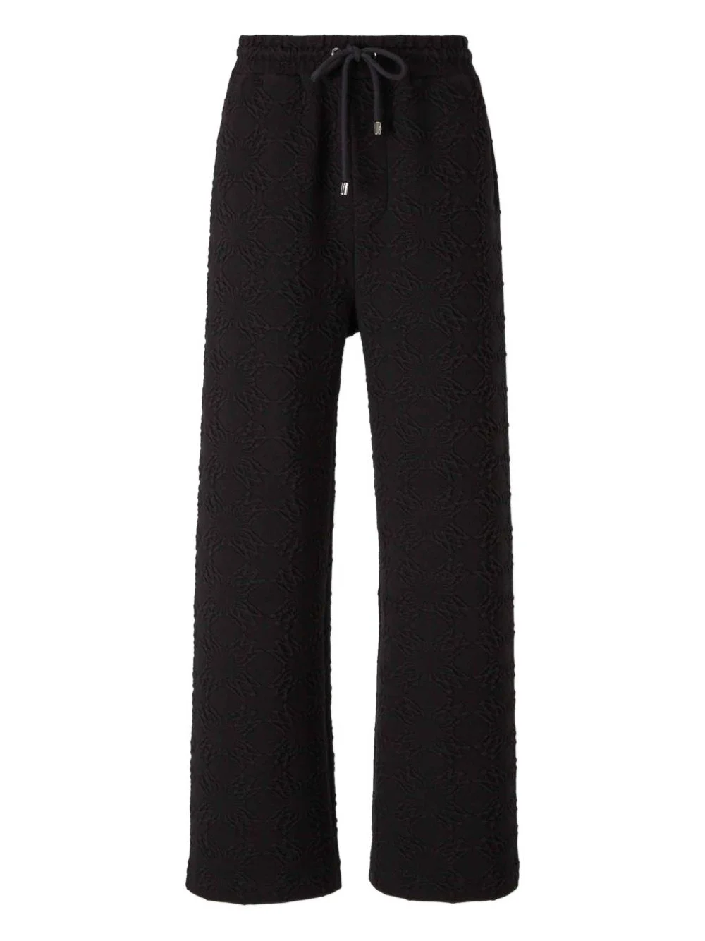 elasticated waist trousers Highlights - Black - Textured - Side pockets - Back pocket - Elasticated waistband - Drawstring Made in Italy Composition Polyester 54%, Cotton 44%, Spandex/Elastane 2% Washing instructions Machine Wash