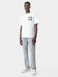 AUTUMN-WINTER 2024 MARKS THE INCEPTION OF THE MA QUAD MONOGRAM, A NEW HOUSE SIGNATURE. THE MA QUAD STRAIGHT JEAN IS DESIGNED IN JACQUARD DENIM WITH CLASSIC FIVE-POCKET CONSTRUCTION AND HAND-DISTRESSED ACCENTS. AUTUMN-WINTER 2024 COLLECTION MADE IN ITALY 100% COTTON