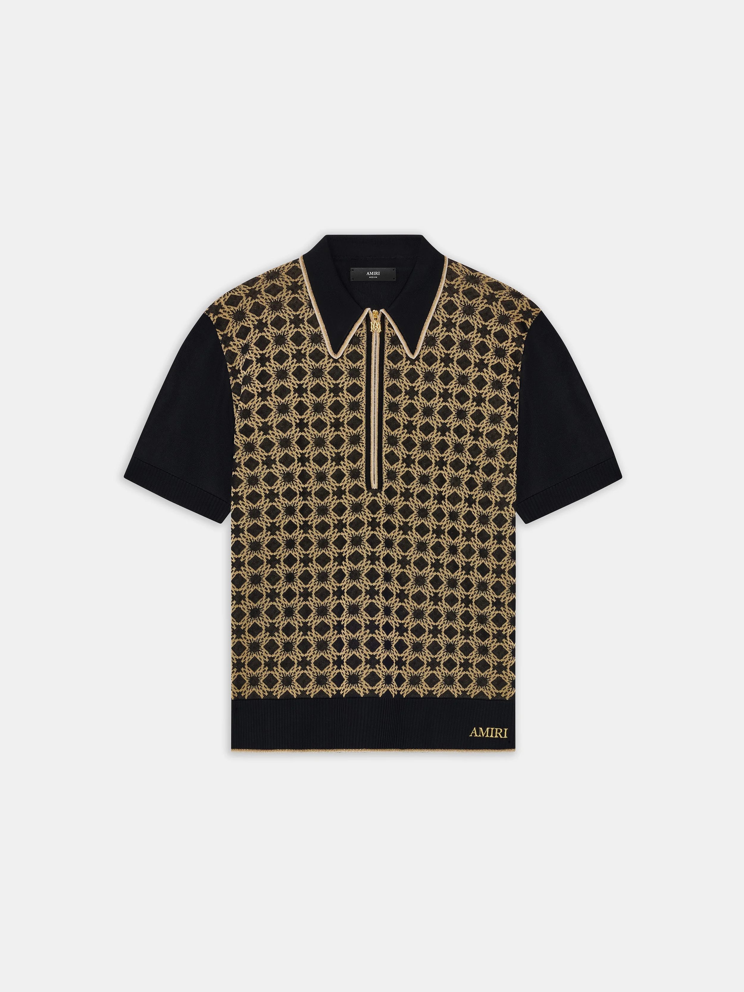 AUTUMN-WINTER 2025 INTRODUCES KNITWEAR ENRICHED WITH THE HOUSE'S MA QUAD MONOGRAM. THE MA QUAD ZIP POLO IS CRAFTED WITH FINE RIB FINISHES, CONTRAST TIPPING AT THE COLLAR, EMBROIDERED LOGO, AND ZIP CLOSURE FEATURING CUSTOM MA HARDWARE. AUTUMN-WINTER 2025 COLLECTION MADE IN ITALY 100% VISCOSE THIS GARMENT HAS UNDERGONE A SPECIAL PROCESS WHICH RESULTS IN INTENTIONAL VARIATIONS OF SHADING AND COLOR, AND ADD TO THE PIECE'S UNIQUE CHARACTERISTICS. THIS MAY LEAD TO BLEEDING OR DYE TRANSFER. PLEASE USE CAUTION WHEN WASHING OR DRY-CLEANING THIS ITEM STYLE:AMKNPO1072-001 SIZE & FIT MODEL MEASUREMENTS: HEIGHT: 6’2.5" CHEST: 35.5" WAIST: 28" HIP: 34.5" PRODUCT MEASUREMENTS (SIZE M): CHEST: 19.125" SHOULDER: 16.875" LENGTH: 25" SLEEVE LENGTH: 10"