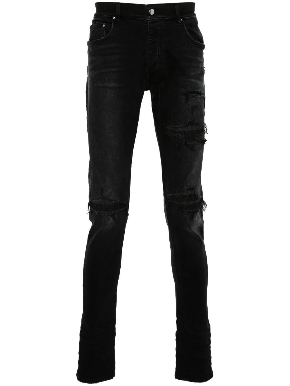 distressed skinny jeans Highlights - Black - Cotton - Denim - Whiskering effect - Ripped detailing - Distressed effect - Logo patch to the rear - Patch detail to the side - Belt loops - Classic five pockets - Front button fastening Made in United States Composition Cotton 100% SIZE & FIT Model measurements Height 6 ft 2 in(1.88 m) Bust/Chest 35.03 in(89 cm) Hips 35.82 in(91 cm) Waist 27.95 in(71 cm) FittingInformation Designed for a skinny fit, these jeans offer a close fit throughout Constructed from stretch denim, this piece offers a stretch fit with durability This piece fits true to size – take your usual size