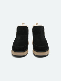 THE HOUSE'S CLASSIC TAKE ON A PULL-ON SUEDE BOOT FEATURES ULTRA-LUXE SHEARLING LINING AND THOUGHTFUL DETAILS. AN EXAGGERATED RUBBER OUTSOLE WITH TREAD ANCHORS THIS BOOT, WHILE A LEATHER PULL TAB AT THE BACKSTAY PANEL ALLOWS FOR EASY PULL-ON WEAR. THIS BOOT IS FINISHED WITH WHIP STITCH DETAILING, EMBOSSED LOGO AT THE HEEL AND FOIL PRINT LOGO ON BACK. AUTUMN-WINTER 2023 COLLECTION SHEARLING, 100% RUBBER