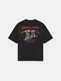 PRE-FALL 2025 SPEAKS TO LIFE ON THE ROAD, WITH GRAPHICS DISTRESSED IN THE MANNER OF WELL-LOVED VINTAGE. THE AMIRI BULL OVERSIZED TEE IN COTTON IS DESIGNED IN A RELAXED FIT AND ILLUSTRATED WITH THE SEASON'S BODY SHOP GRAPHIC ON FRONT AND BACK. PRE-FALL 2025 COLLECTION MADE IN ITALY 100% COTTON THIS GARMENT HAS UNDERGONE A SPECIAL PROCESS WHICH RESULTS IN INTENTIONAL VARIATIONS OF SHADING AND COLOR, AND ADD TO THE PIECE'S UNIQUE CHARACTERISTICS. THIS MAY LEAD TO BLEEDING OR DYE TRANSFER. PLEASE USE CAUTION WHEN WASHING OR DRY-CLEANING THIS ITEM STYLE:AMJYTE1229-001 SIZE & FIT MODEL IS WEARING SIZE M MODEL MEASUREMENTS: HEIGHT: 6’2” CHEST: 35.5" WAIST: 28" HIP: 34.5" PRODUCT MEASUREMENTS (SIZE M): CHEST: 23.5" SHOULDER: 24" LENGTH: 29" SLEEVE LENGTH: 9.5"