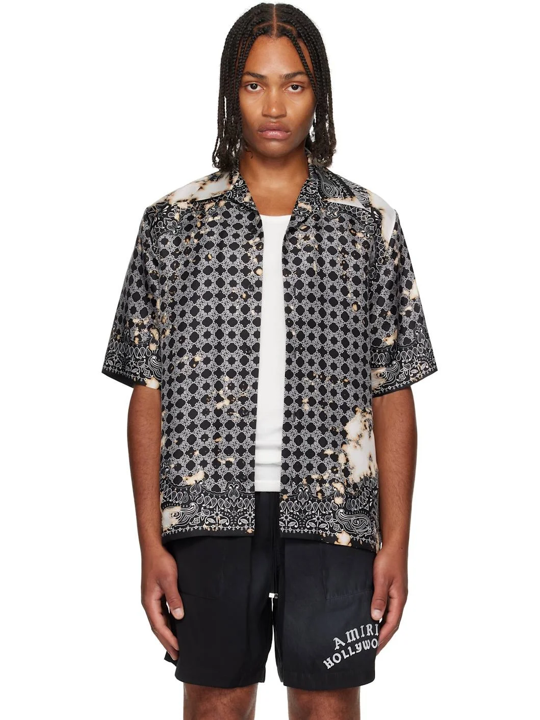 Silk satin shirt. Paisley logo pattern and bleaching printed throughout. · Open spread collar · Button closure Supplier color: Black 100% silk. Made in Italy 252886M192013