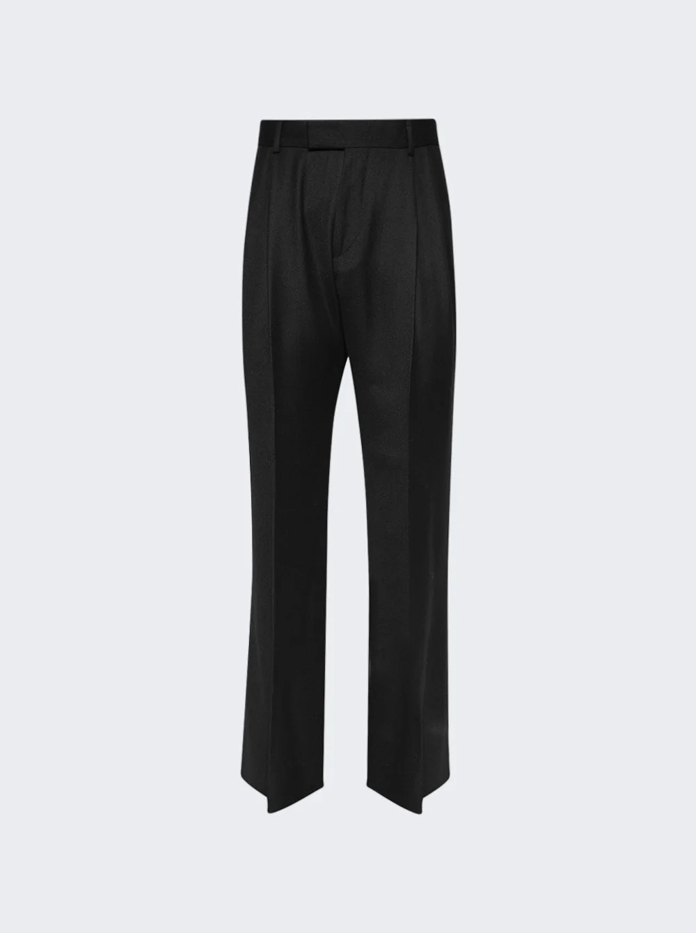 Details - Tailored, pleated pants - Zip fly with hook and bar closure - 4-pocket design - Front pintuck detail - Midweight twill fabric Dimensions: Model is 6'1"/185cm and is wearing a size EU48 Composition: 53% Wool, 37% Viscose; Lining: 100% Viscose Care: Care according to label Brand Style: AMSUFP1026 Designer/Brand: AMIRI