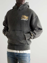 AMIRI's hoodie is printed with a Pegasus, which is believed to symbolise imagination and creativity. It's cut for a comfortable fit from loopback cotton-jersey and washed and distressed for a vintage look and feel. Size & Fit - Fits true to size. Take your normal size - Designed for a regular fit - Mid-weight, slightly stretchy fabric - Model is shown wearing a M - Model measures: chest 38"/ 96cm, height 6'2"/ 188cm Details & Care - Black, tonal-brown and light-grey loopback cotton-jersey - 100% cotton; trim: 95% cotton, 5% elastane; lining: 100% Lyocell - Dry clean