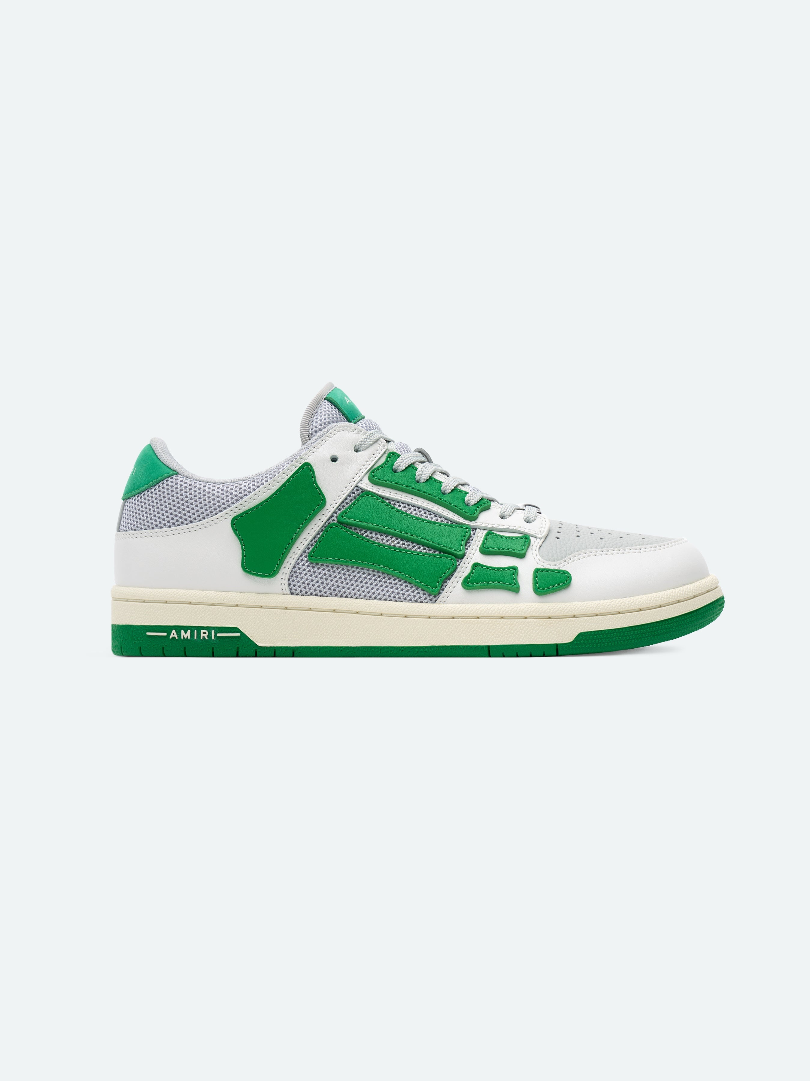 THIS SEASON'S SKEL TOP LOW PAIRS BREATHABLE MESH PANELING WITH HAND CUT AND SEWN SKELETON LEATHER APPLIQUÉS ON A CLASSIC SPORTSWEAR SILHOUETTE. DESIGNED IN A DISTINCTIVE VIVID GREEN, THIS SNEAKER IS FINISHED WITH A RUBBER SOLE AND HOUSE SIGNATURE GRAPHICS. PRE-SPRING 2024 COLLECTION 100% COW LEATHER