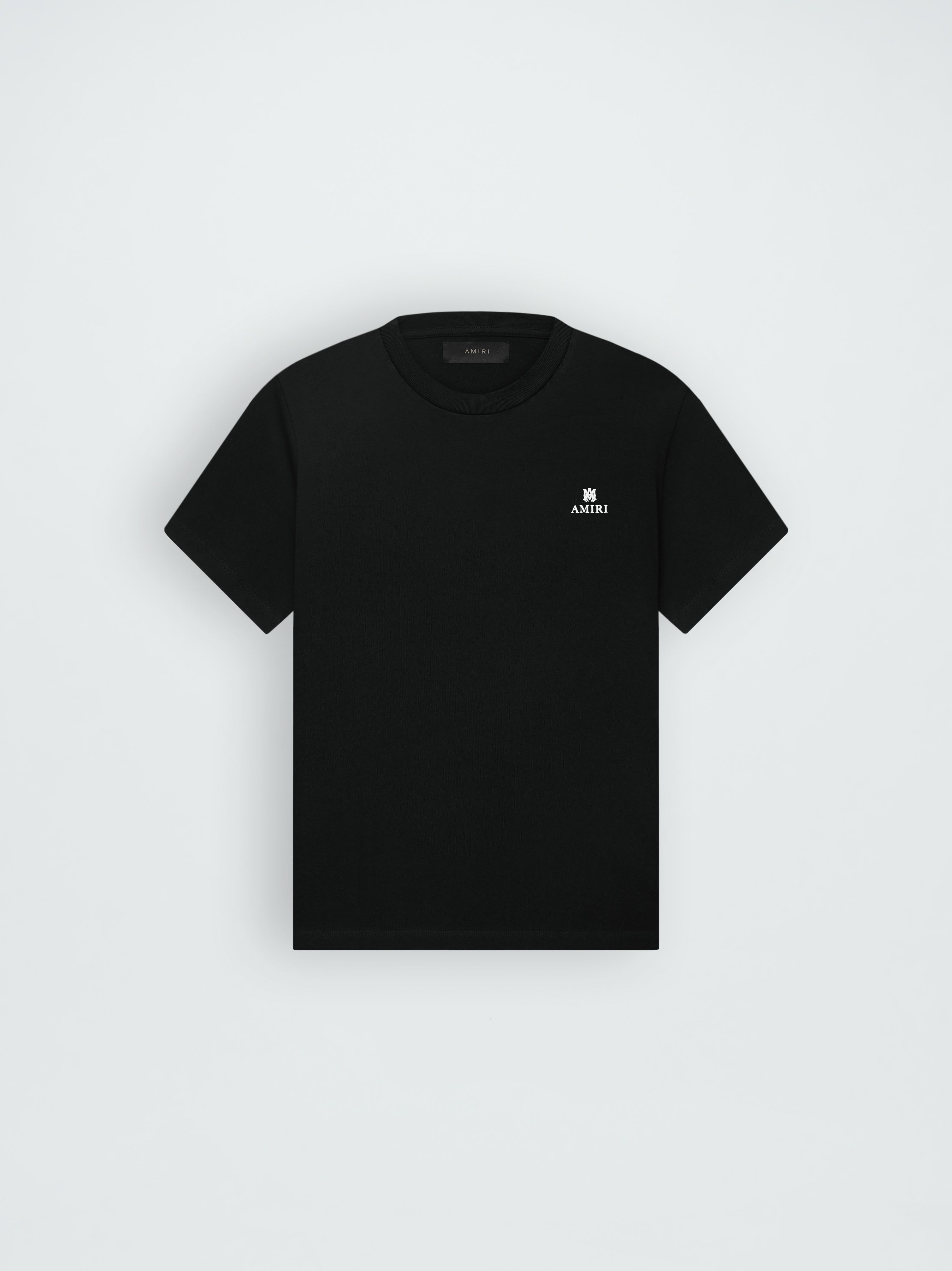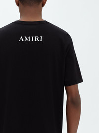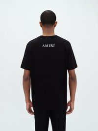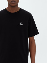 EMPLOYING AN UNDERSTATED, TIMELESS APPROACH, THIS TEE IN SOFT COTTON JERSEY IS ACCENTED WITH THE SIGNATURE AMIRI LOGO AND MA ICON. AN CLASSIC EMBLEM OF EASE IN DRESSING, THIS TEE COORDINATES EFFORTLESSLY WITH HOUSE DENIM, TROUSER OR SHORT OFFERINGS. MODEL IS 6'1" AND WEARS A SIZE MEDIUM MADE IN ITALY 100% COTTON DRY CLEAN RECOMMENDED
