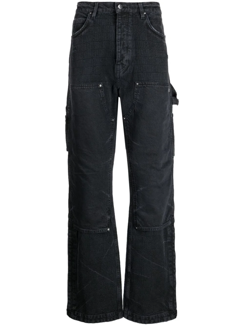 mid-rise straight-leg jeans Highlights - Black - Denim - Faded effect - Monogram jacquard - Panel detailing - Strap detailing - Belt loops - Mid-rise - Straight leg - Front button and zip fastening - Classic five pockets - Two side cargo pockets Made in United States Composition Cotton 100% SIZE & FIT Measurement FRONT RISE 12 in(30.5 cm) INSIDE LEG 32.51 in(82.6 cm) BACK RISE 14.01 in(35.6 cm) HIPS 39.01 in(99.1 cm) Hem Width 17.99 in(45.7 cm) WAIST 34.01 in(86.4 cm)