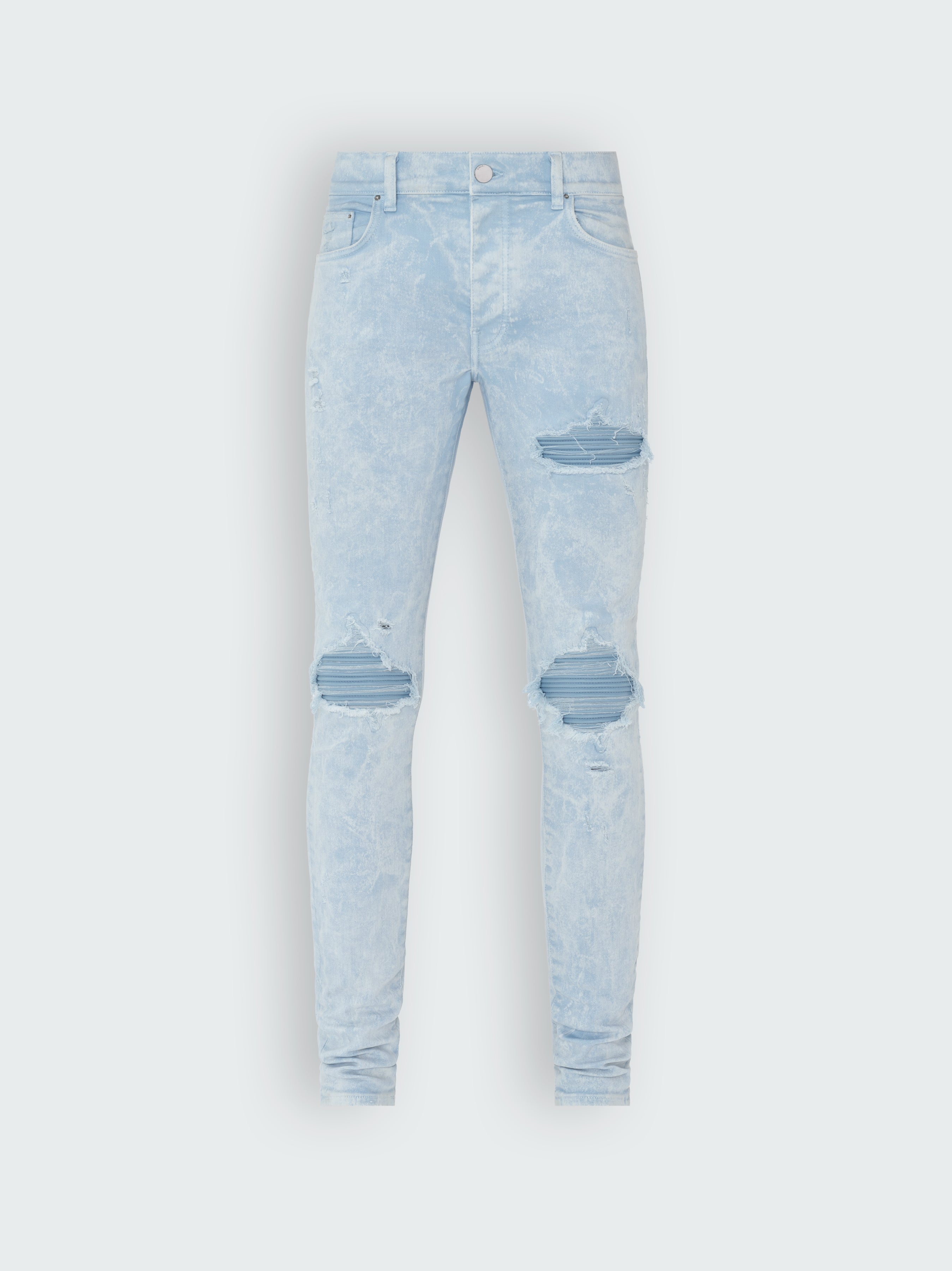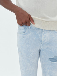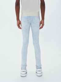 SS23 MINERAL WASH BABY BLUE JEANS MADE IN LOS ANGELES, CA 12 OZ ITALIAN STRETCH DENIM MODEL HEIGHT 6' 2", 28" WAIST, 34" INSEAM AND IS WEARING SIZE US: 29 92% COTTON 6% ELASTOMULTIESTER 2% ELASTANE DRY CLEAN RECOMMENDED
