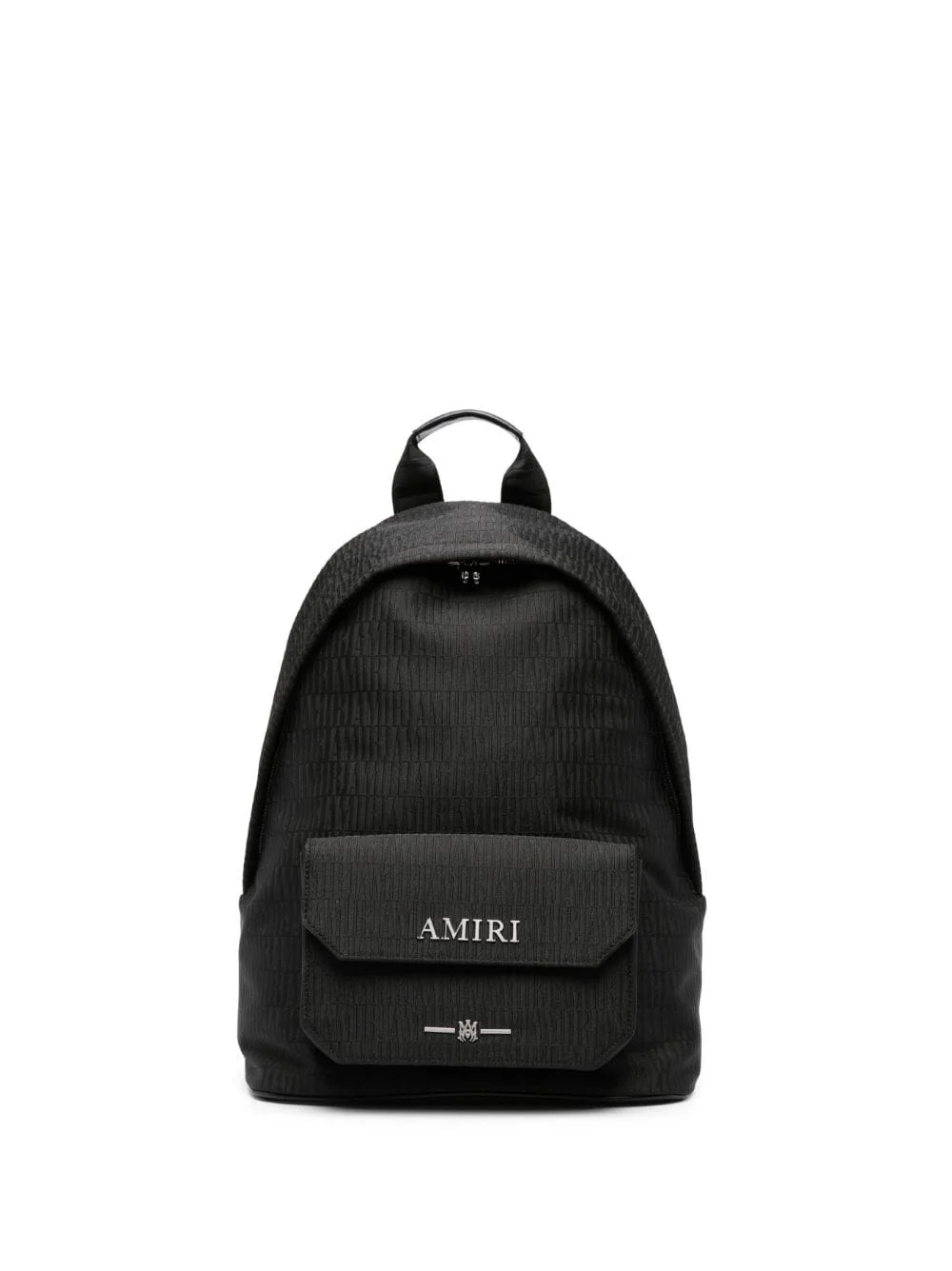 monogram jacquard backpack Evocative of AMIRI's penchant for logomania and high-octave branding, this black backpack is made in Italy and decorated with a monogram jacquard throughout. The spacious accessory is elevated with a foldover pocket and silver-tone logo plaque at the front. Highlights - Black - Monogram jacquard - Silver-tone hardware - Single top handle - Adjustable shoulder straps - Foldover magnetic pocket - All-around zip fastening - Logo plaque - Leather trim Made in Italy Composition Outer: Polyester 100%, Leather 100% Lining: Nylon 100% SIZE & FIT Model measurements Height 6 ft 1 in(1.86 m) Bust/Chest 36.61 in(93 cm) Hips 37 in(94 cm) Waist 28.74 in(73 cm) Measurement DEPTH 7.87 in(20 cm) HANDLE 2.75 in(7 cm) HEIGHT 15.74 in(40 cm) STRAP 11.41 in(29 cm) WIDTH 12.59 in(32 cm)