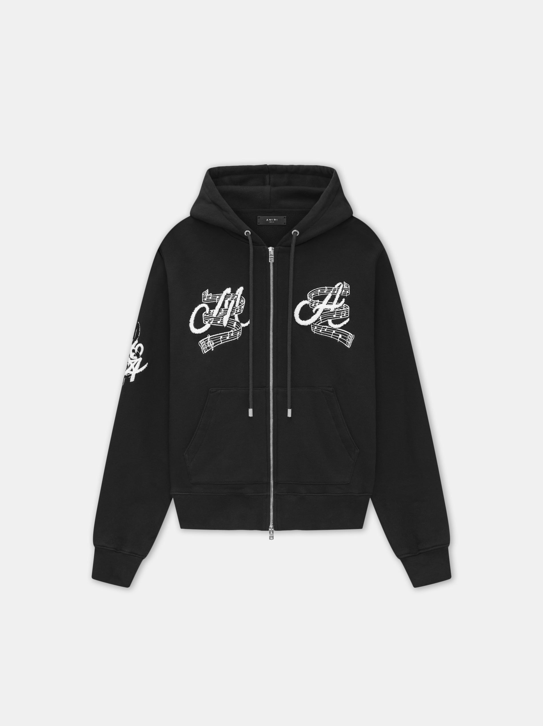 FOR SPRING-SUMMER 2025, MUSIC REMAINS AT THE HEART OF AMIRI WITH GRAPHICS THAT IDEALIZE A FICTIONAL HOLLYWOOD VENUE. THE MUSIC CLUB ZIP UP HOODIE IS ILLUSTRATED WITH EMBROIDERY AND CHENILLE PATCH APPLIQUES AND FINISHED WITH DOUBLE-ZIP CLOSURE. SPRING-SUMMER 2025 COLLECTION MADE IN ITALY 100% COTTON STYLE:AMJYHD1109-001 SIZE & FIT PRODUCT MEASUREMENTS (SIZE "M"): CHEST: 24" SHOULDER: 20" LENGTH: 28" SLEEVE LENGTH: 27" NORMAL FIT
