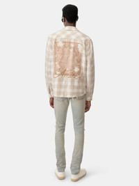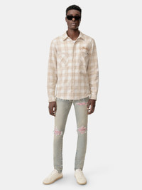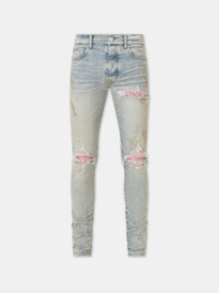 FOR PRE-FALL 2025, DENIM BECOMES A CANVAS FOR INTRICATE AND NOVEL FABRICATION. THE MX1 INTERNATIONAL JEAN IS HAND-DISTRESSED, REPAIRED WITH PLEATED BANDANA PRINT, AND FINISHED WITH CLASSIC FIVE-POCKET DETAILING. PRE-FALL 2025 COLLECTION MADE IN USA 92% COTTON, 6% ELASTOMULTIESTERE, 2% ELASTANE THIS GARMENT HAS UNDERGONE A SPECIAL PROCESS WHICH RESULTS IN INTENTIONAL VARIATIONS OF SHADING AND COLOR, AND ADD TO THE PIECE'S UNIQUE CHARACTERISTICS. THIS MAY LEAD TO BLEEDING OR DYE TRANSFER. PLEASE USE CAUTION WHEN WASHING OR DRY-CLEANING THIS ITEM STYLE:AMDNSY1154-543 SIZE & FIT MODEL IS WEARING SIZE 30 MODEL MEASUREMENTS: HEIGHT: 6’2” CHEST: 35.5" WAIST: 28" HIP: 34.5" PRODUCT MEASUREMENTS (SIZE 30): WAIST: 30.5" RISE: 10.25" HIP: 37" INSEAM: 34"