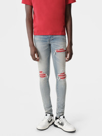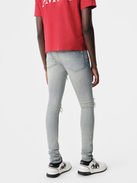 DENIM BECOMES A CANVAS FOR INTRICATE FABRICATION PROCESSES THAT EMBODY THE HOUSE'S SPIRIT OF CONTEMPORARY INNOVATION AND CRAFT. THE MX1 IN ITALIAN STRETCH DENIM IS HAND-DISTRESSED AND REPAIRED WITH PLEATED SUEDE AND FINISHED WITH CLASSIC FIVE-POCKET DETAILING. CORE COLLECTION MADE IN USA 92% COTTON, 6% ELASTOMULTIESTERE, 2% CONTRAST: ULTRASUEDE STYLE:AMDNSY1056-406 SIZE & FIT MODEL IS WEARING SIZE "29" MODEL MEASUREMENTS: HEIGHT: 6'3 CHEST: 34.5" WAIST: 29" HIP: 36" PRODUCT MEASUREMENTS: WAIST: 30" RISE: 9.75" HIP: 36" INSEAM: 34" SKINNY FIT