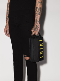 *PRE-ORDERS ARE EXPECTED TO SHIP UPON ARRIVAL TO OUR FACILITY. ESTIMATED ARRIVAL DATE: JUNE 30, 2022. ITEMS MAY SHIP SOONER THAN THIS DATE YOU WILL BE CHARGED AT CHECKOUT AND BE NOTIFIED ONCE ORDER IS FULFILLED. PF22 COLLECTION NYLON DOPP KIT CASE.FEATURING AMIRI LOGO FRONT. LEATHER DETAILS AND TOP HANDLE MADE IN ITALY ONE SIZE TWILL INSIDE LINING DETAILS & CARE CUSTOM SWISS HARDWARE 100% PA SPOT CLEAN MEASUREMENTS HEIGHT: 5 IN, 12.7 CM WIDTH: 9 1/4, 23.5 CM DEPTH: 3 3/4 IN, 9.5 CM