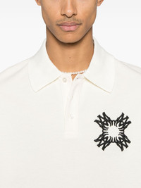 MA Quad polo shirt Highlights - Ecru - Front button placket - Polo collar - Short sleeves - Short side slits Made in Italy Composition Cotton 100% SIZE & FIT Model measurements Height 6 ft 2 in(1.87 m) Bust/Chest 37.4 in(95 cm) Hips 36.61 in(93 cm) Waist 29.13 in(74 cm) FittingInformation Designed for a regular fit, this polo shirt offers a comfortable loose fit throughout the body Made from a midweight non-stretch fabric, this piece offers minimal elasticity when worn