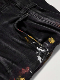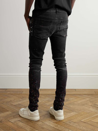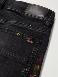 AMIRI is the brand of choice for LA royalty across the sports, film and music industries. In a signature skinny fit, these jeans are cut from 'Aged Black' stretch-denim and splattered with multicoloured paint, heavily concentrated along the lower legs. Size & Fit - Fits true to size. Take your normal size - Those with muscular legs may wish to take the next size up - Skinny leg, mid-rise style - Mid-weight, slightly stretchy fabric - Model is shown wearing a 32 - Model measures: waist size 32, height 6'2"/ 188cm Details & Care - Multicoloured stretch-denim - Button fastenings - 92% cotton, 6% elastomultiester, 2% elastane - Spot clean - Designer wash: Aged Black