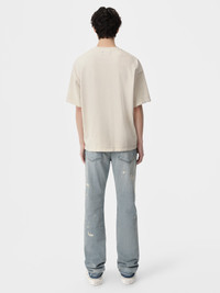 PRE-FALL 2024 DENIM INTRODUCES PIECES THAT ARE LENT TIME-WORN CHARACTER BY PAINT SPLATTER ACCENTS THAT SPEAK TO THE ARTIST'S HAND. THE PAINTER STRAIGHT JEANS FEATURE A RELEASED HEM AND ARE WASHED AND TREATED FOR A TIME-WORN EFFECT. PRE-FALL 2024 COLLECTION MADE IN USA 100% COTTON